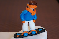 Estando o bolo coberto com a massa, passamos então à fase da decoração. Neste ponto, cada formada escolheu o tema do seu bolo, tendo como princípio que iríamos aprender a fazer um ursinho. Eu escolhi o tema do mar e decidi colocar o meu ursinho a pescar.