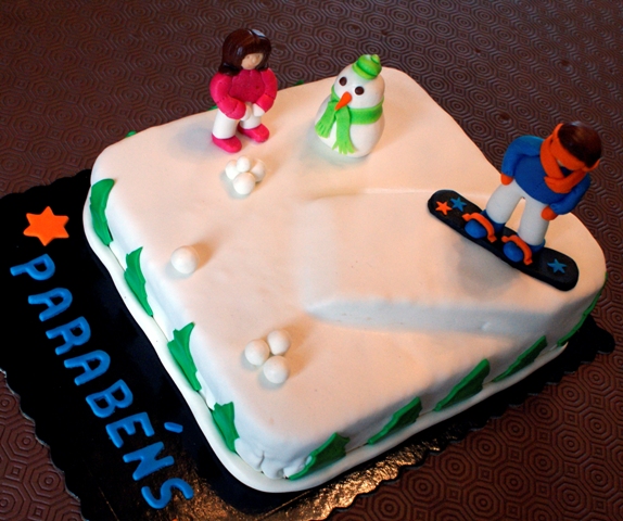 Aqui vos deixo as fotografias da obra de arte que fiz num workshop de decoração de bolos. Já me tinha aventurado a decorar bolos com massa portuguesa (para quem não sabe, a massa portuguesa é feita à base de açúcar), mas eis que passei pela montra de uma nova loja de artigos para festas e decoração de bolos e vi o anúncio de um workshop de decoração de bolos. E pensei: é desta que vou aprender a fazer como os profissionais!